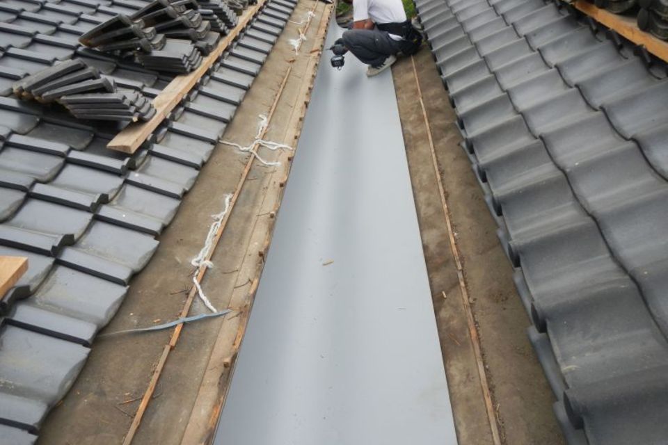 古くなり穴があいて、雨漏りがしていたやげん樋を交換いたしました。 板金屋と日にちと時間を合わせ、1日で施工いたしました。